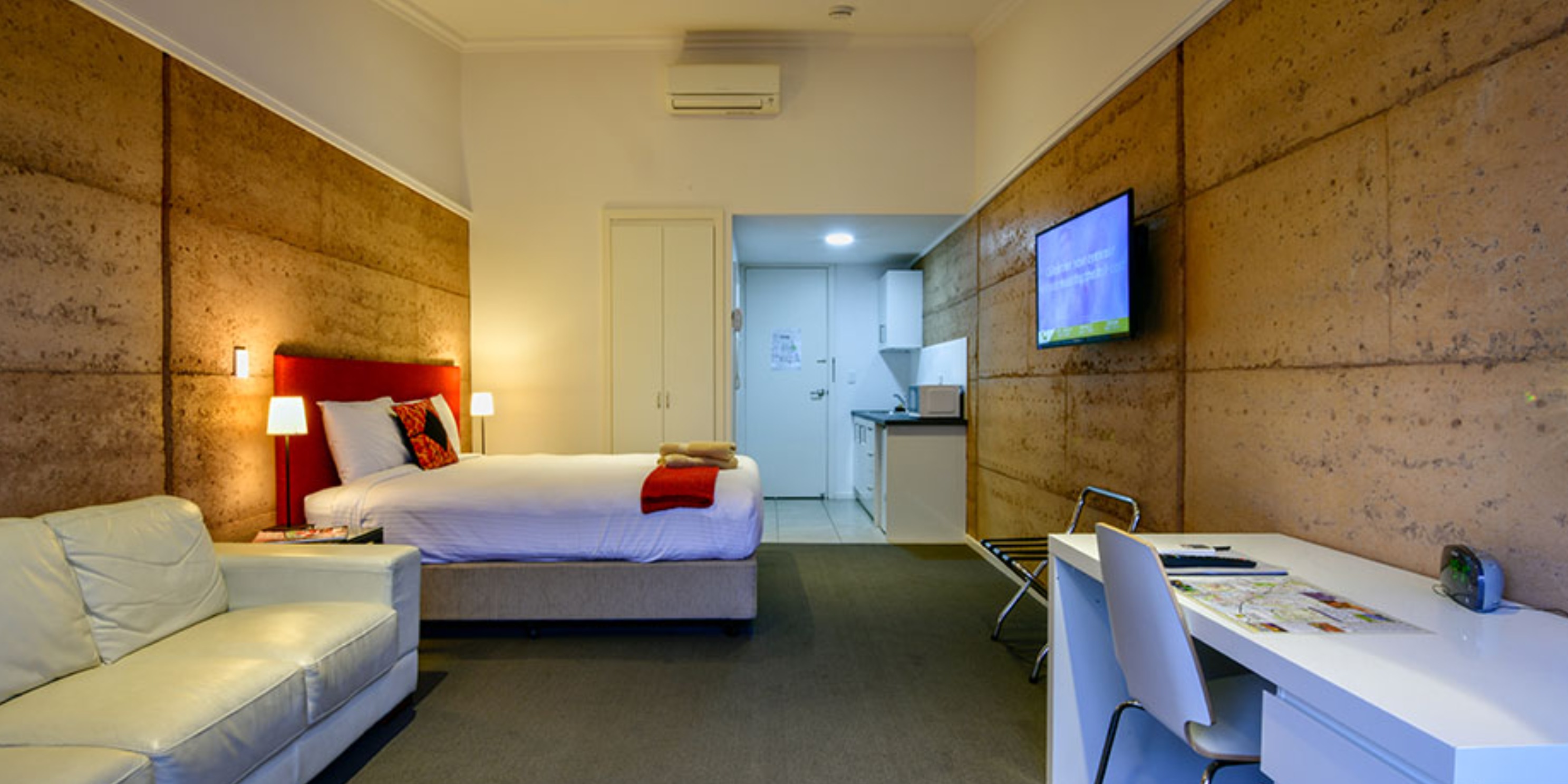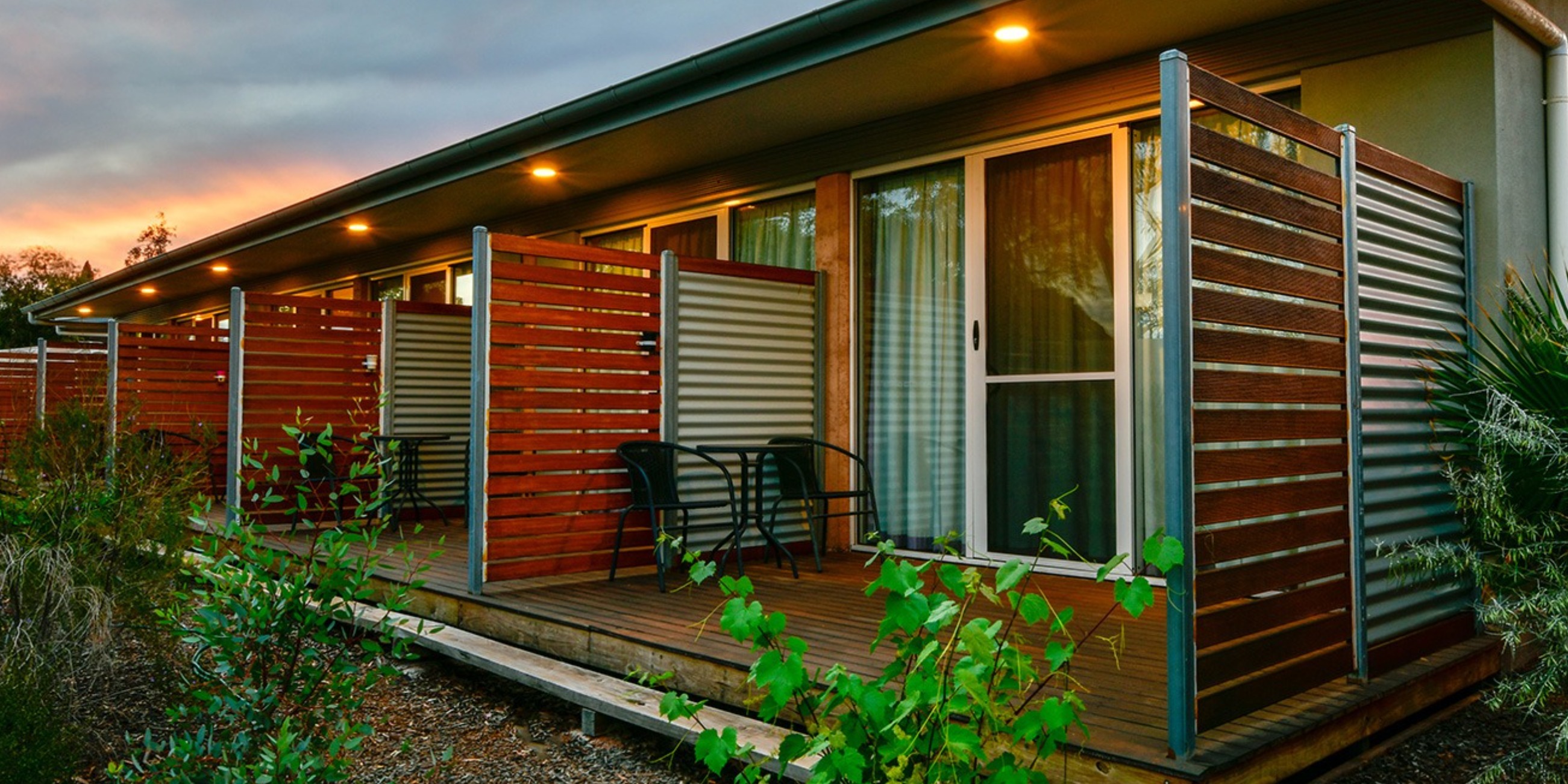 The energy efficient buildings are built with internal rammed earth walls for thermal mass and keep the rooms cool in summer and warm in winter. The building envelope uses Structural Insulated Panels (SIPs) with double-glazed windows and acts like a cool room. Other energy efficient technologies like LED lighting, heat pumps and solar panels keep energy usage low. The rooms still have quality reverse cycle heating and cooling and a large deck area (which will be shaded in the near future) and this provides cross ventilation to keep the rooms fresh and light. These features provide year-round comfort for our guests while keeping our energy costs maneagble.The energy efficient buildings are built with internal rammed earth walls for thermal mass and keep the rooms cool in summer and warm in winter. The building envelope uses Structural Insulated Panels (SIPs) with double-glazed windows and acts like a cool room. Other energy efficient technologies like LED lighting, heat pumps and solar panels keep energy usage low. The rooms still have quality reverse cycle heating and cooling and a large deck area (which will be shaded in the near future) and this provides cross ventilation to keep the rooms fresh and light. These features provide year-round comfort for our guests while keeping our energy costs maneagble.